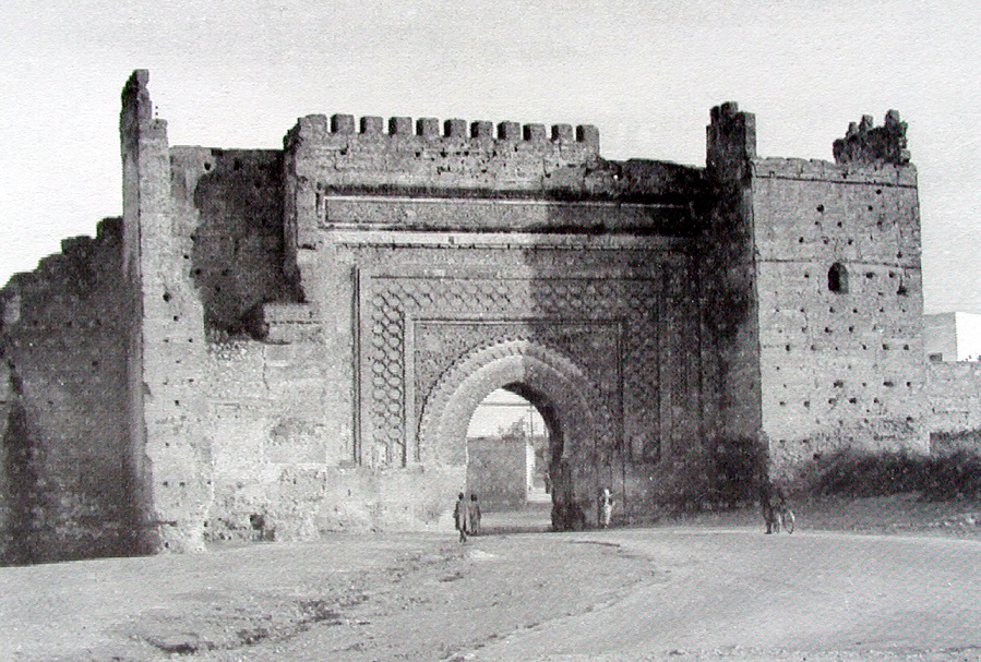 Bab El Mansour a été achevée en 17322 par Moulay Abdallah, fils du sultan Moulay Ismaïl. Elle marque l'entrée principale du Palais impérial construit par Moulay Ismaïl. La porte a été conçue par un chrétien converti à l'islam, d'où son nom : La porte de Mansour, le renégat. Les colonnes de marbre qui ornent les bastions latéraux en saillie proviennent des ruines de Volubilis.